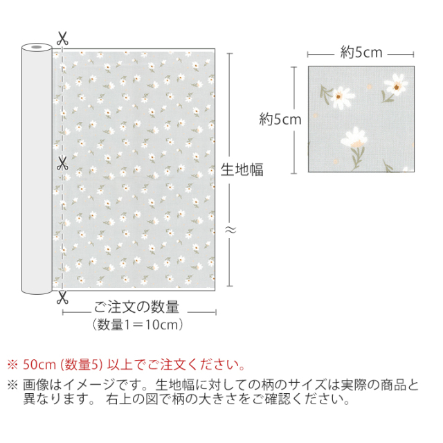 オーダーカット販売 生地幅×10cm単位(ご注文数量1=10cm) 必ず50cm(数量5)以上でご注文下さい(売切れの場合は除きます) 例)「数量5」でご注文→生地幅×50cmの生地 「数量23」でご注文→生地幅×230cmの生地 |