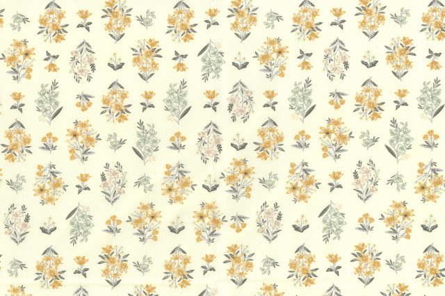 ほのかなイエロー地に規則的に並ぶイエローフラワーがエレガントなデザインです。