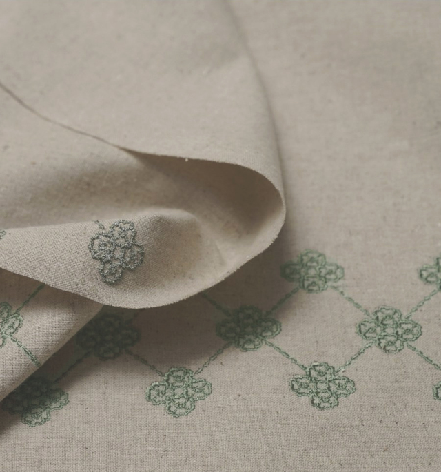 ハーフリネン 刺繍生地 素材:コットン45%・リネン55%(ハーフリネン) 生地幅:146cm 柄の向き:あり 厚み:厚い