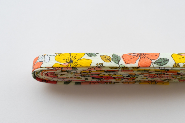コットン100%で柔らかい手触りの4つ折りバイアステープです。