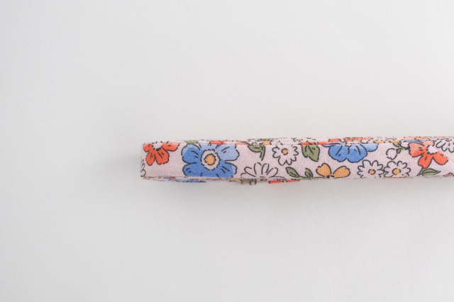 ・バイアステープの特性上、斜めに柄が入ります。 ・生地のつなぎ目の部分が入ることがございます。 ・折りが甘い、均等に折れていないことがございます。 ・多少幅が前後する場合がございます。 ・製造時期やロット違いにより、色味や風合いに微妙なブレが生じます。 |
