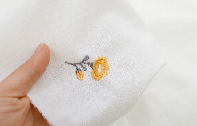 真っ白なウォッシュコットンにぷっくりとした質感の刺繍がランダムに入っています。