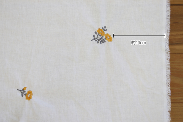 生地の端から刺繍部分まではおよそ11cm程ですが、刺繍の場所によっては多少誤差がございます。