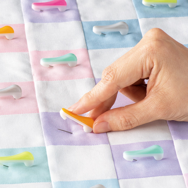 キルティングやミシンキルトのしつけ作業がスムーズにできる、曲げタイプのしつけピンです。