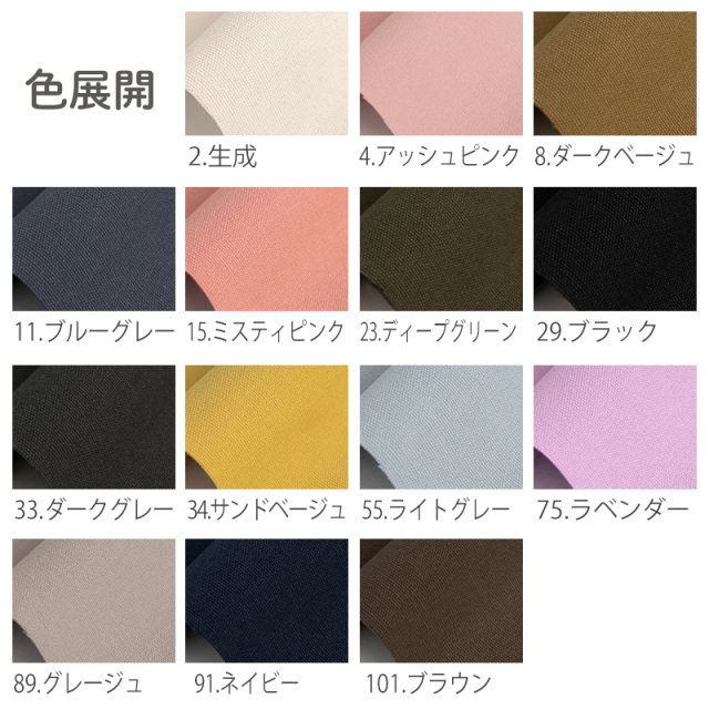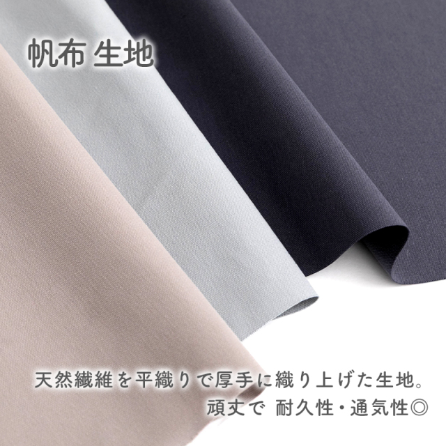 ・製造時期やロット違いにより、色味や風合いに微妙なブレが生じます。 ・キャンバス生地特有の色ムラや色とび、繊維のスジが見られる場合がございます。 生地の特性によるもので避けられないものですので、あらかじめご了承の上お買い求め下さい。 ・天然素材のため、水通しやお洗濯で3〜5%程縮みます。 ・色落ち・色移りする場合がありますので、水通しやお洗濯は単独で行ってください。 ・乾燥機は使用しないでください。 |