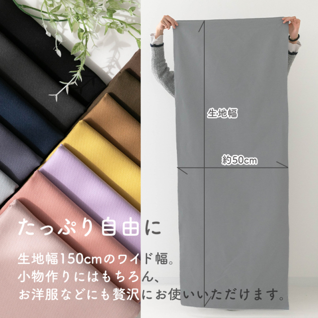オーダーカット販売 生地幅×50cm単位(ご注文数量1=50cm) 例)「数量2」でご注文→生地幅×100cmの生地 「数量5」でご注文→生地幅×250cmの生地 ※3.5m(数量7)以上は3m単位で切り分けてのお届けとなります。ご了承ください。 |