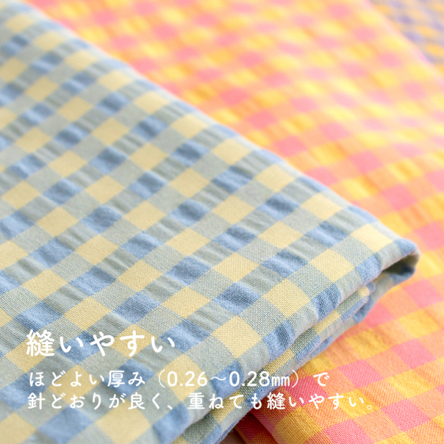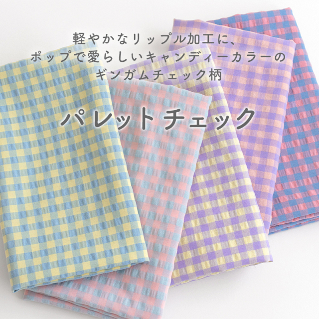 軽やかなリップル加工に、ポップで愛らしいキャンディーカラーのギンガムチェック柄「パレットチェック」。