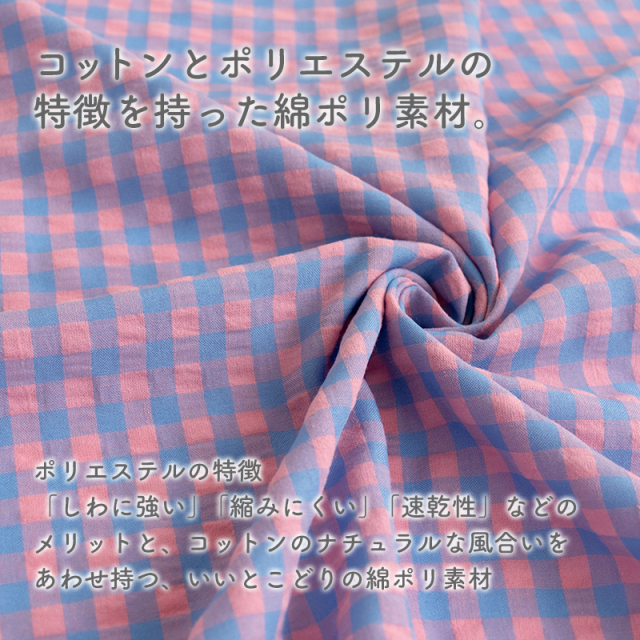 コットンのナチュラルな風合いをあわせ持つ、綿ポリ生地です。