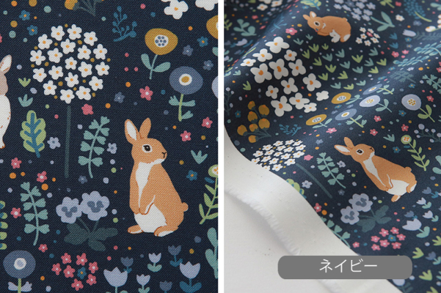 『 Blooming rabbit コットン生地 (抗菌・防臭加工) 』