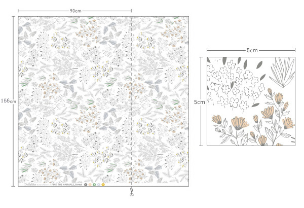 こちらの生地は「forest」、花たちが華やかに咲く森にひょっこり顔を出す動物たちが描かれています。
