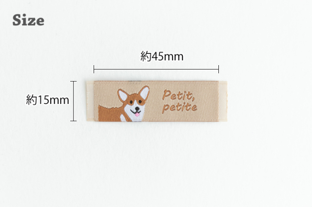 両端をアイロンで折り曲げて横長のまま付けても、真ん中で折って挟みタグとしても使えるデザイン。