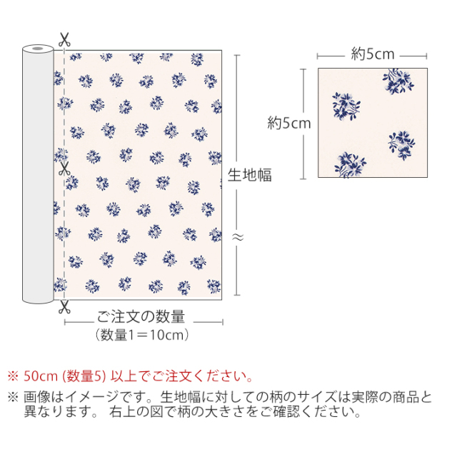 オーダーカット販売 生地幅×10cm単位(ご注文数量1=10cm) 必ず50cm(数量5)以上でご注文下さい(売切れの場合は除きます) 例)「数量5」でご注文→生地幅×50cmの生地 「数量23」でご注文→生地幅×230cmの生地 |