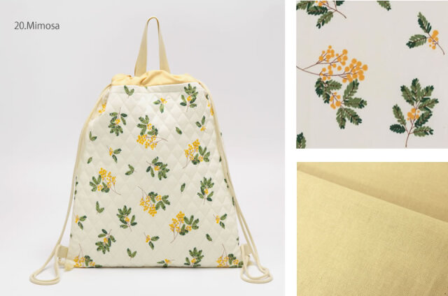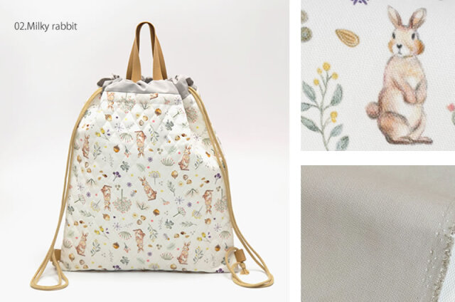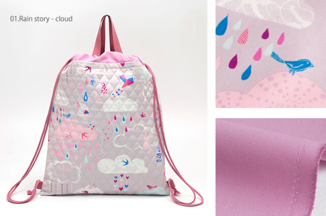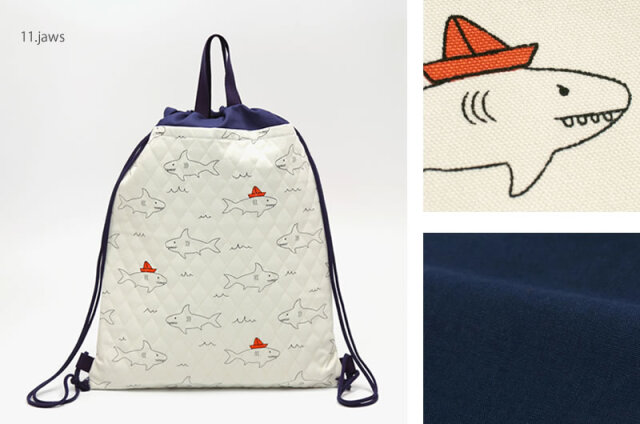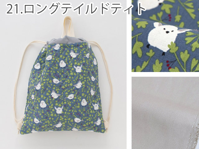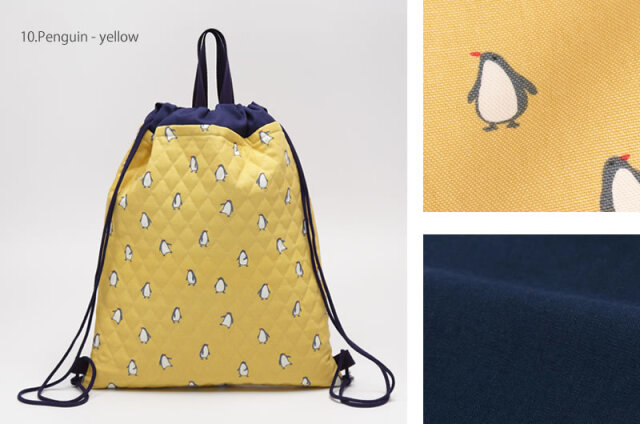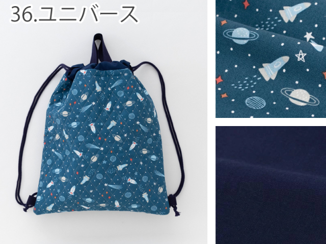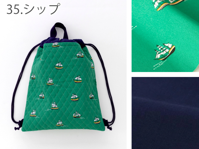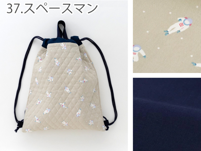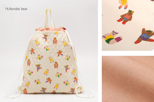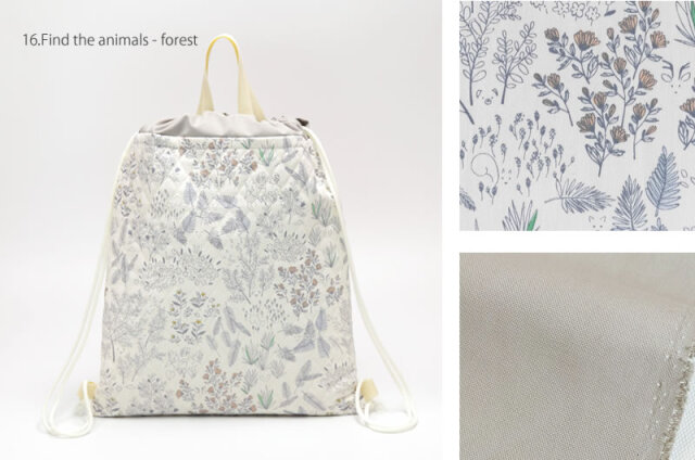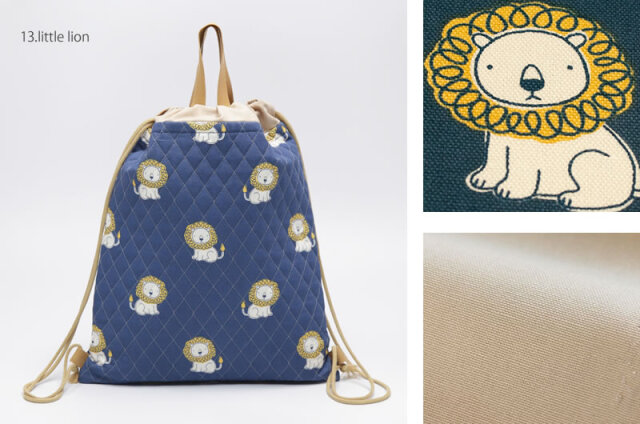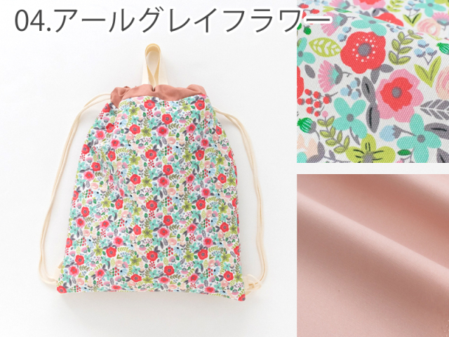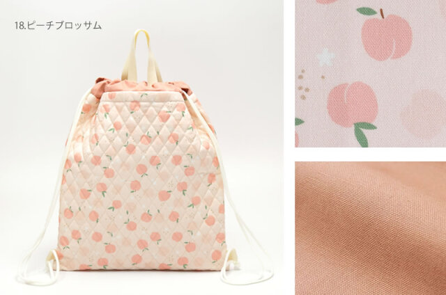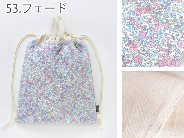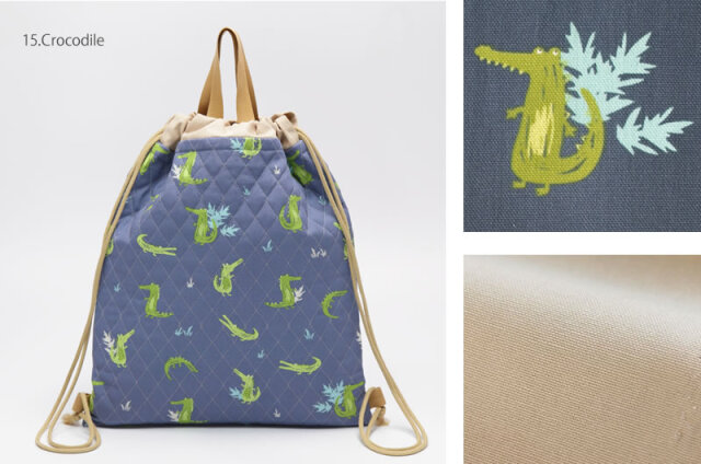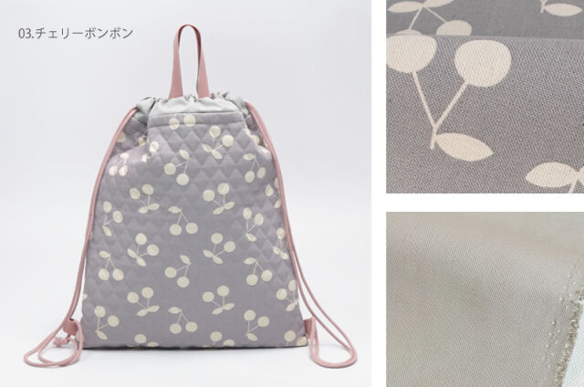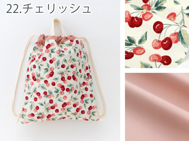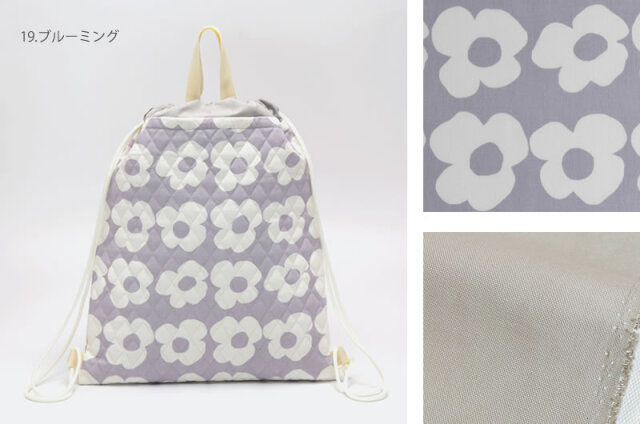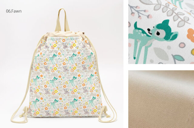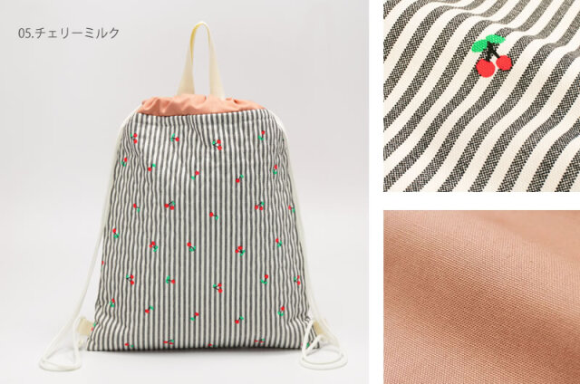 デコレクションズの人気オリジナル生地を使用したナップサック。