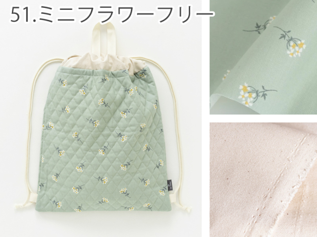 入園入学グッズのために特注したオックス生地をキルティング加工。
