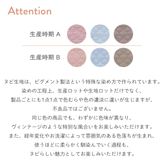 ・お洗濯は洗濯ネットや中性洗剤を使用して手洗いかドライコースで洗濯することをお勧めします。 ・ヌビ生地は、染色・素材の特性上、水分・摩擦などにより色落ちすることがございます。お洋服や他バッグ等への色移りに十分ご注意下さい。 ・数回のお洗濯にて、色落ちが落ち着いてまいりますが、必ず単独のお洗濯をお願いします。 ・漂白剤は使用しないでください。 ・長時間、水につけ置きしないでください。 ・お洗濯の際に多少形が崩れたり、生地が縮むことがございます。 ・直射日光を避けて日陰で乾燥させてください。乾燥機は使用しないでください。 |