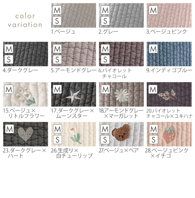 デコレクションズの大人気オリジナルカラー・ヌビキルティング生地を使用。
