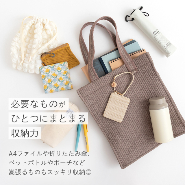 マチあり大容量、大きめサイズの縦型トートバッグ。