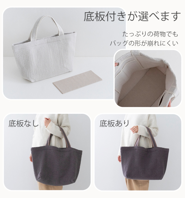 お子様連れのママさんや荷物の多い通勤時に嬉しい、大容量のシンプルトート。