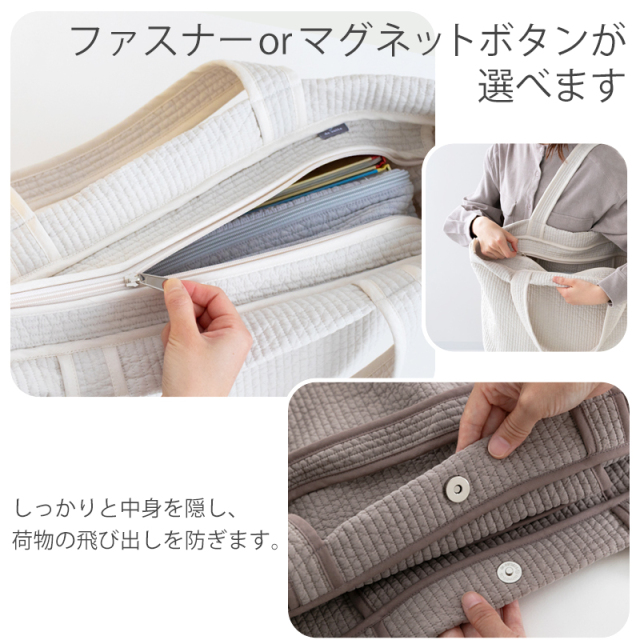 マザーズバッグはもちろん、お仕事や旅行用に、シーンを選ばずメインでもサブバッグとしてもオールシーズン活躍します。