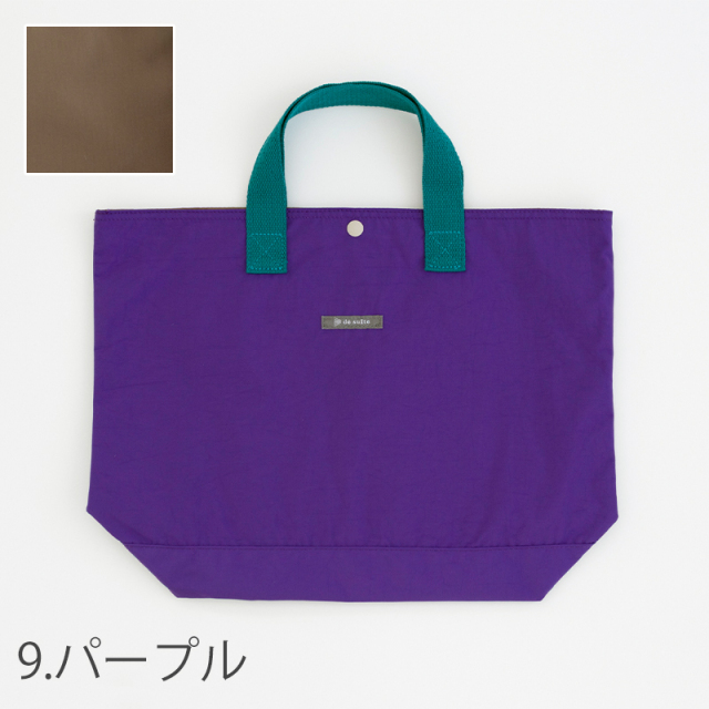 表布:ナイロン100%(ウォッシュ加工) 内布:ポリエステル100% スナップボタン:ポリアセタール 持ち手:アクリル100% |