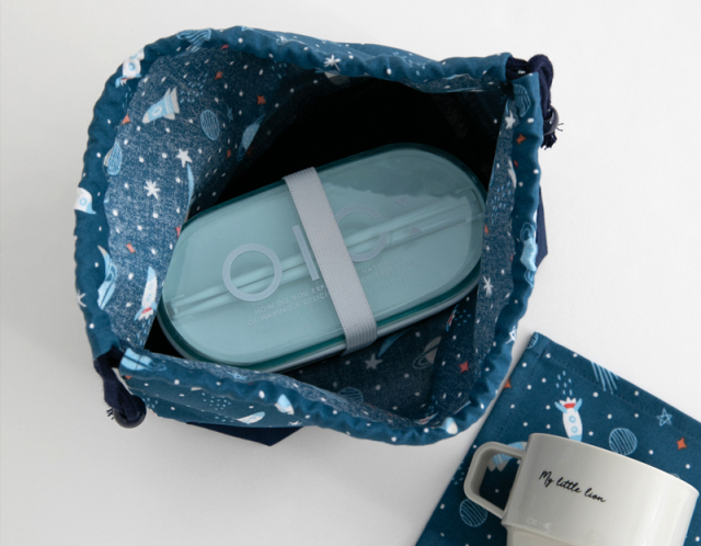 二段のお弁当箱でもすっぽり入るサイズ感。高学年になり大きいお弁当になっても安心です。