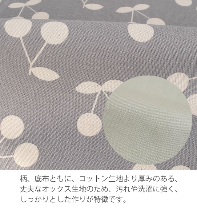 コットン生地より厚みのある、丈夫なオックス生地のため、汚れや洗濯に強く、しっかりとした作りが特徴です。