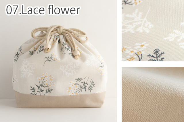 コットン100%(オックス) ※底布は切り替えデザイン カラーひも:アクリルまたはポリエステル |