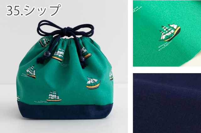 デコレクションズの人気オリジナル生地を使用した巾着袋。