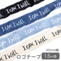 ロゴテープ 40mm幅 1.5m巻 I CAN . I WILL . 材質:コットン100% 太さ:約40mm 長さ:1.5m巻 厚み:0.7mm |