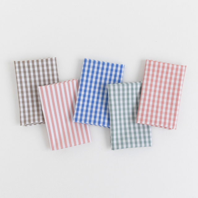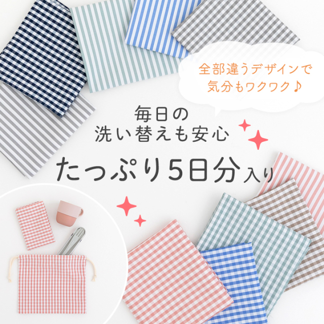 柄違いのチェックやストライプが入っているので、洗い替えにも便利で、子どもも“今日はこれ!”と選ぶのが楽しみに。男女問わず使いやすい落ち着いた柄がそろっています。