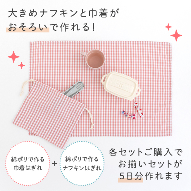 「綿ポリ生地で作るノーアイロンナフキンはぎれセット」はこちらから