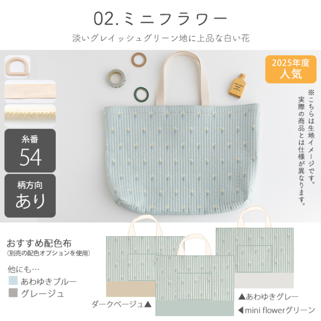 オリジナルデザインで同柄のヌビ生地(ラインキルティング)とコットン生地の他、