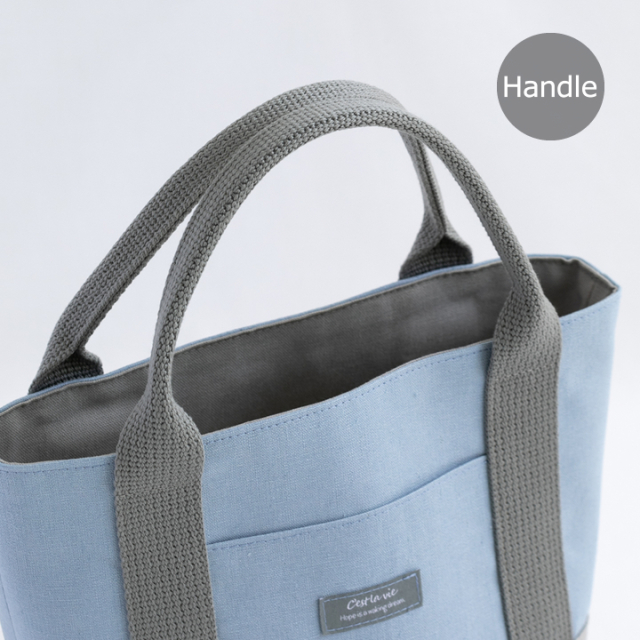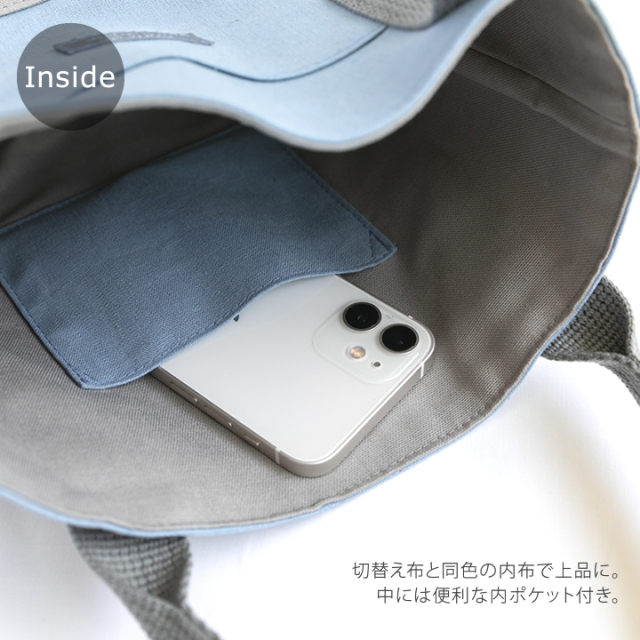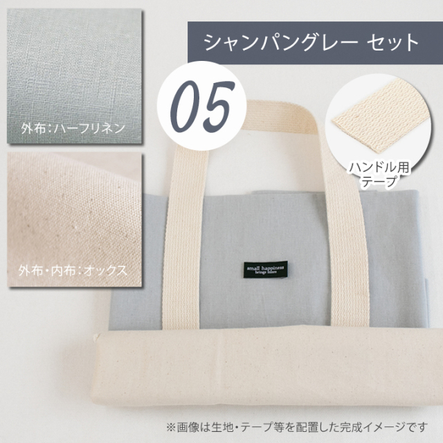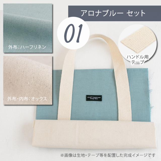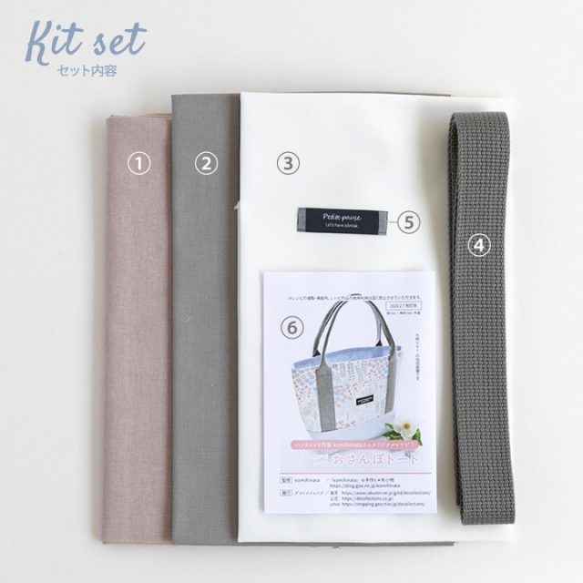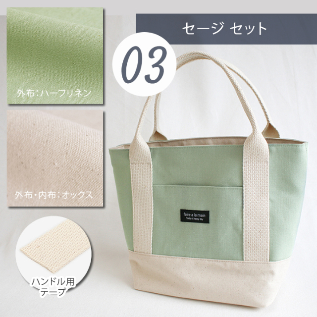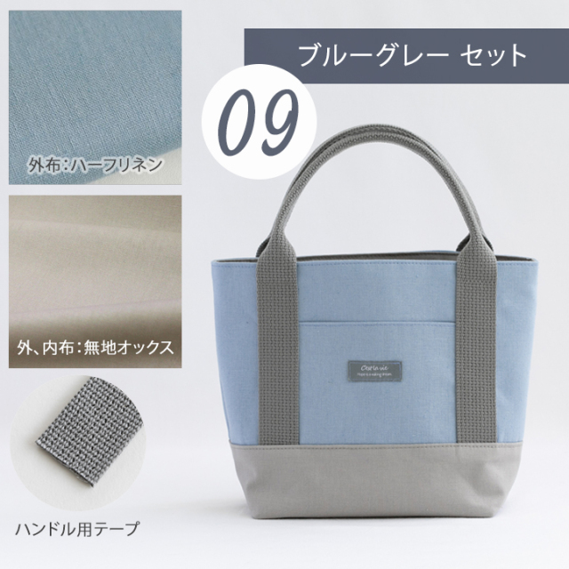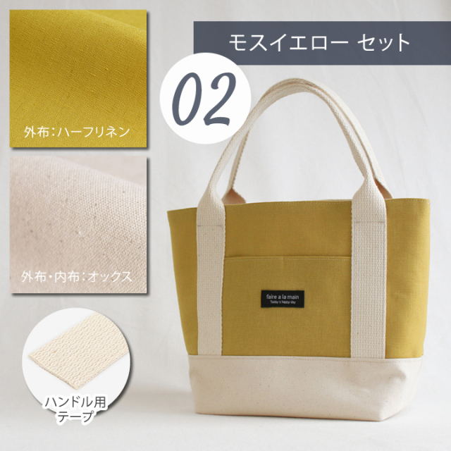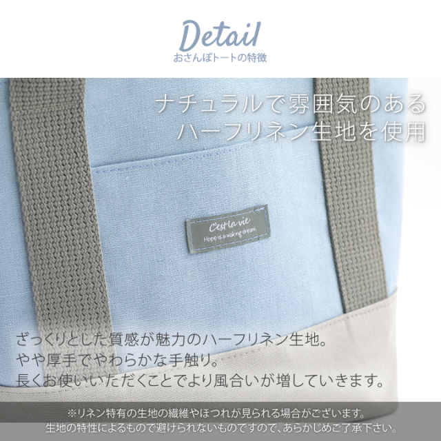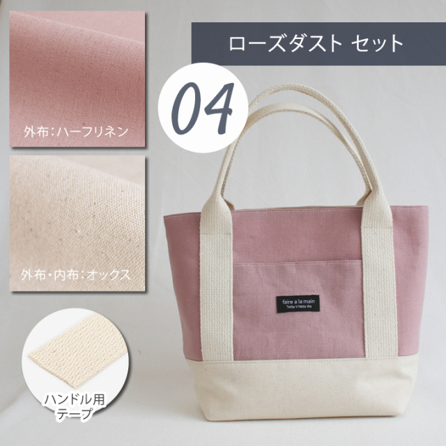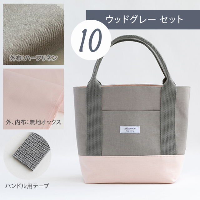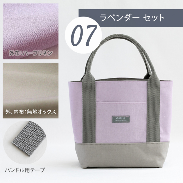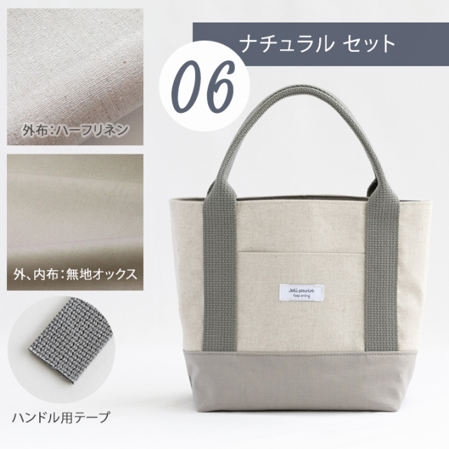 ニュアンスカラーが魅力のハーフリネン無地生地をメインにした、シンプルで使いやすい「おさんぽトート」が作れるキット商品です。