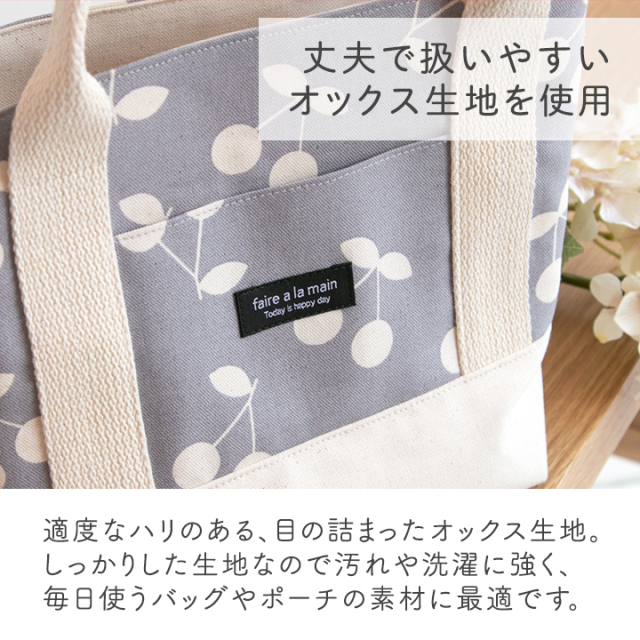 カットも縫製も直線で、作り方も単純で簡単なのに、見映えのする作品ができました。布地や持ち手テープも縫いやすく、重なっているところも家庭用ミシンで難なく縫製できました。