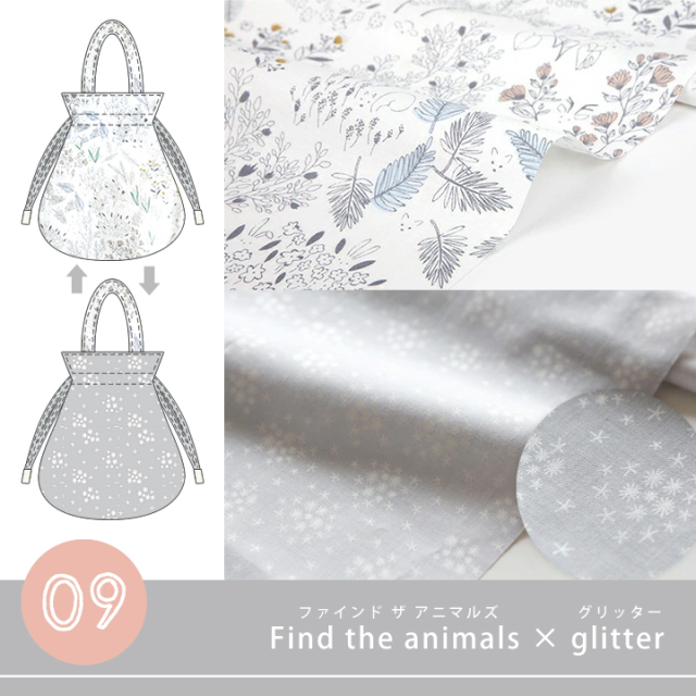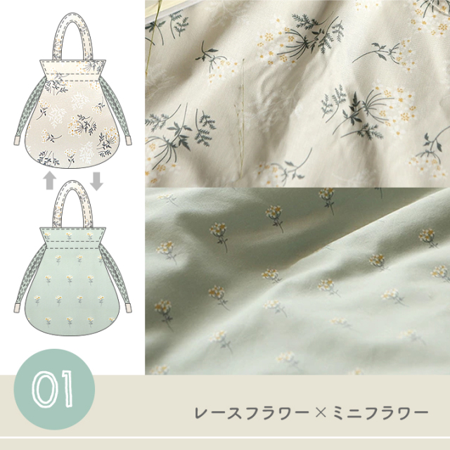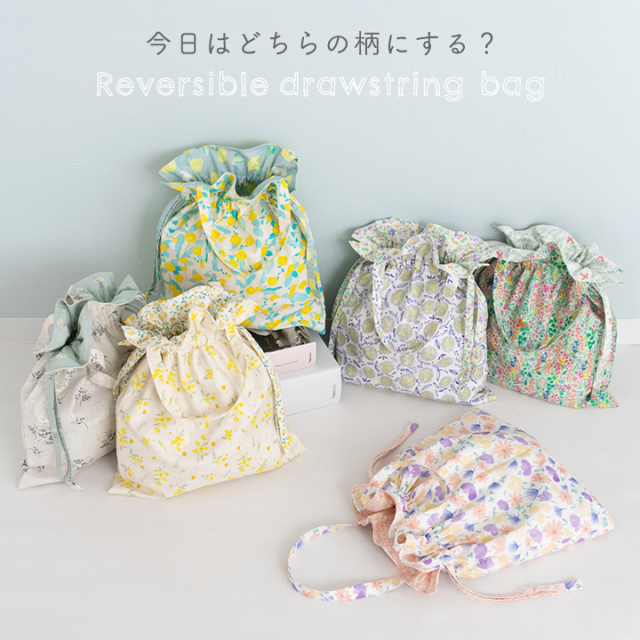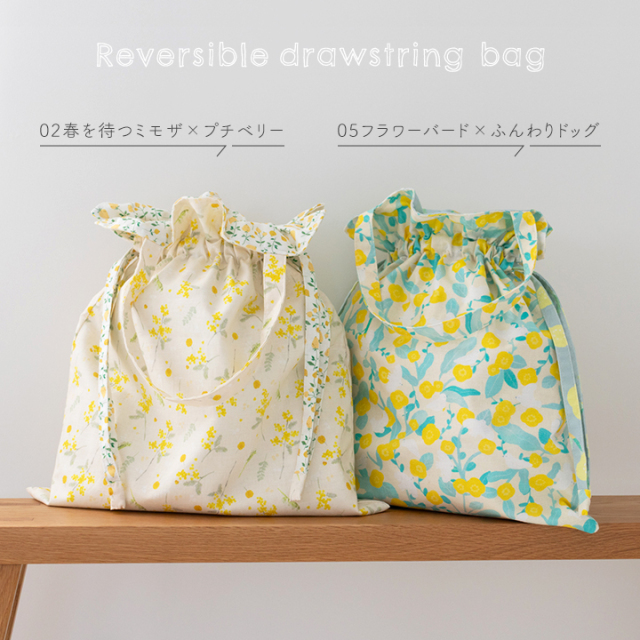 リバーシブル巾着バッグキット(柄コットン2種.ver)