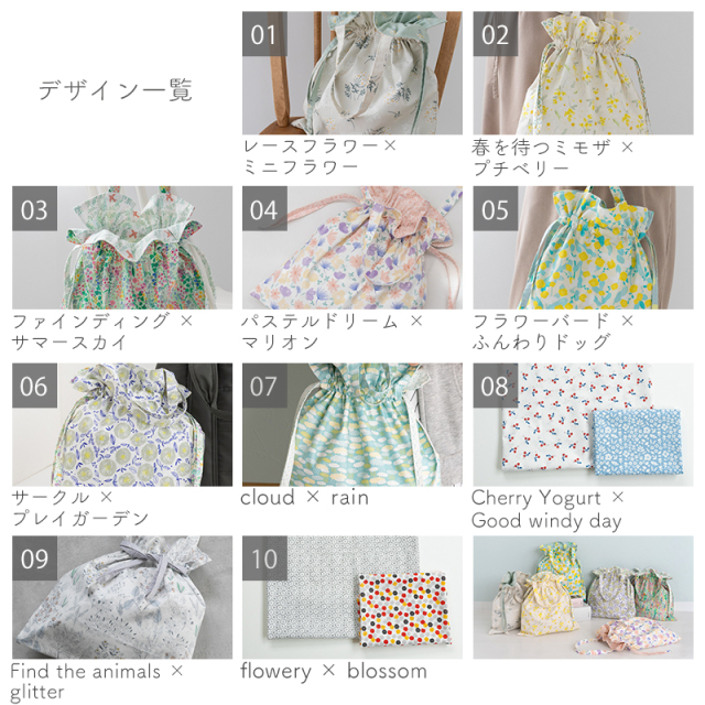 ほどよいサイズの「巾着バッグ」が作れるキット商品です。