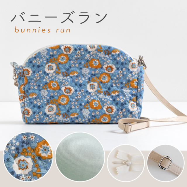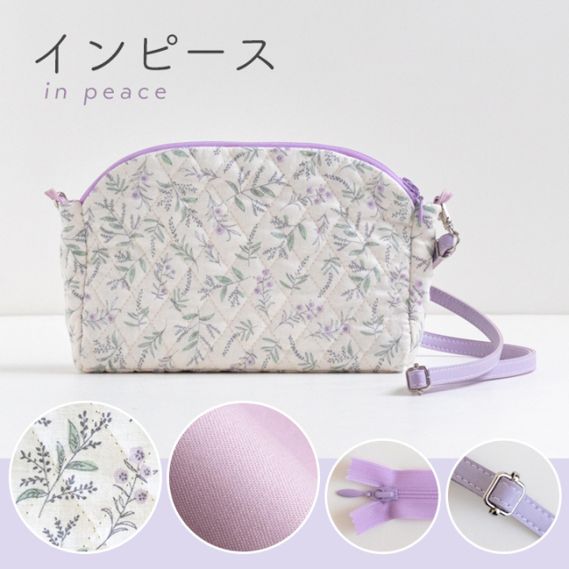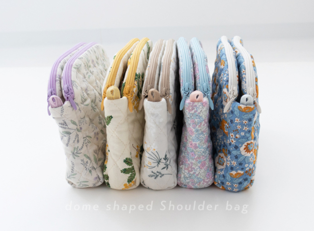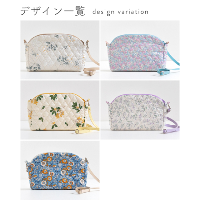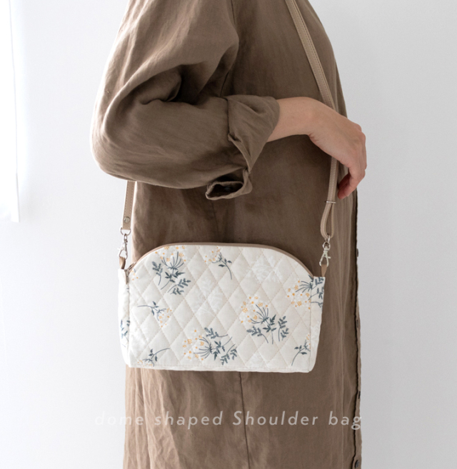 デコレクションズオリジナル・大人かわいい柄と上品なひし形ステッチが魅力のキルティング生地をメインにした、ドーム型ショルダーバッグのキットです。