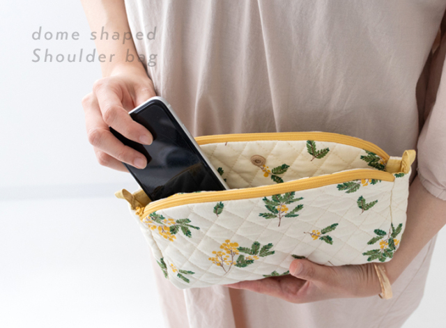 上部がやさしくラウンドした愛らしいドーム型ショルダーバッグは、一見シンプルながらも機能性◎。