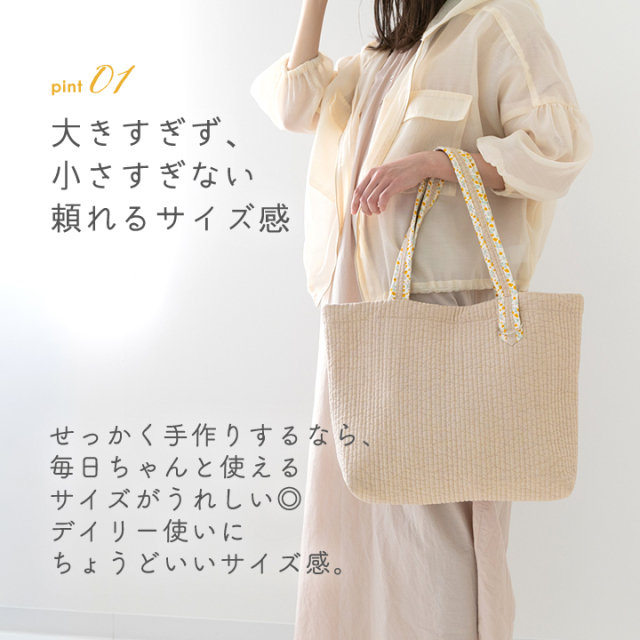 A4サイズがすっぽり入る、大容量のDカン付きヌビトートバッグキットです。