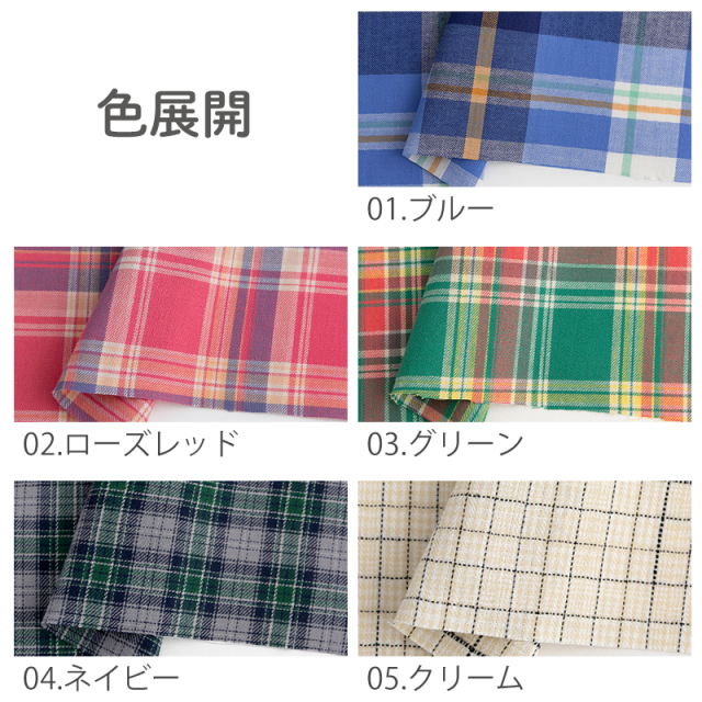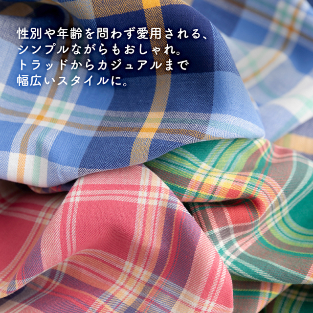 タータンチェック、マドラスチェック、ウィンドウペーンチェックなど、人気のチェック柄を集めた「コットン チェック生地」。