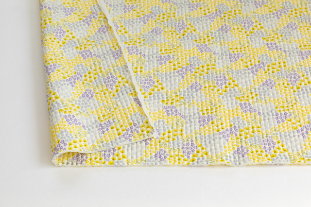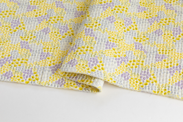 シルバー・黄・薄紫・黄緑が、かわいらしく調和したラインキルティング生地です。