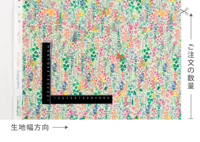 オーダーカット販売 生地幅×10cm単位(ご注文数量1=10cm) 必ず50cm(数量5)以上でご注文下さい(売切れの場合は除きます) 例)「数量5」でご注文→生地幅×50cmの生地 「数量23」でご注文→生地幅×230cmの生地 |
