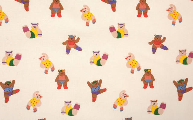 80年代風の衣装に身を包みやる気いっぱいの「エアロビックベアー」。