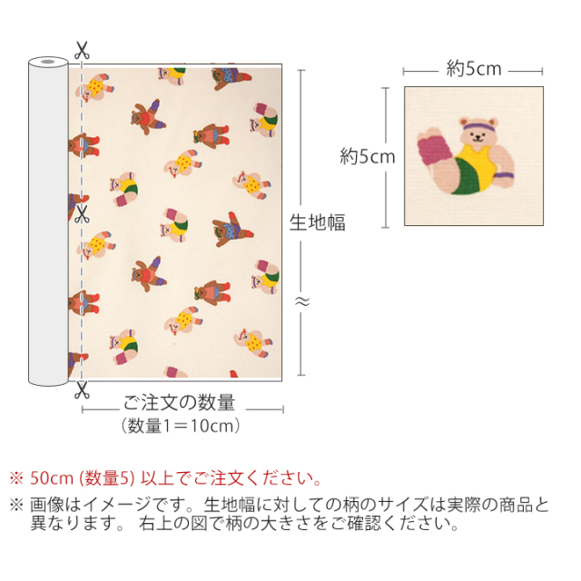 オーダーカット販売 生地幅×10cm単位(ご注文数量1=10cm) 必ず50cm(数量5)以上でご注文下さい(売切れの場合は除きます) 例)「数量5」でご注文→生地幅×50cmの生地 「数量23」でご注文→生地幅×230cmの生地 |