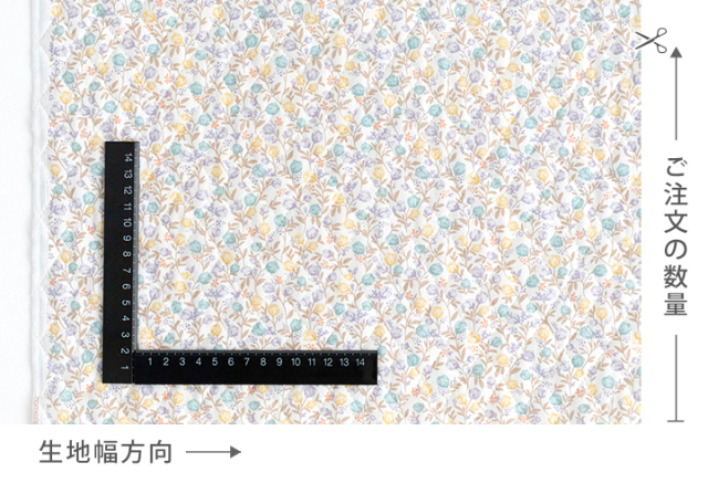 オーダーカット販売 生地幅×10cm単位(ご注文数量1=10cm) 必ず50cm(数量5)以上でご注文下さい(売切れの場合は除きます) 例)「数量5」でご注文→生地幅×50cmの生地 「数量23」でご注文→生地幅×230cmの生地 |