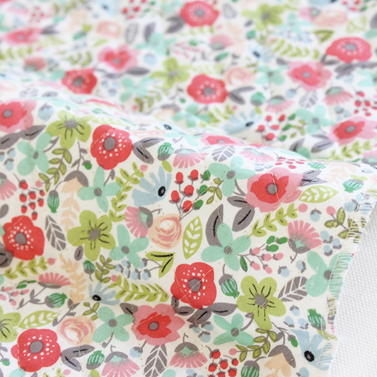 柄が細かいので、カラフルでも大人っぽく優しい印象の、コットンのキルティング生地です。