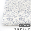 若干クリームよりのホワイト地に、グレイッシュネイビーの線画で草花がラフに描かれたキルティング生地です。