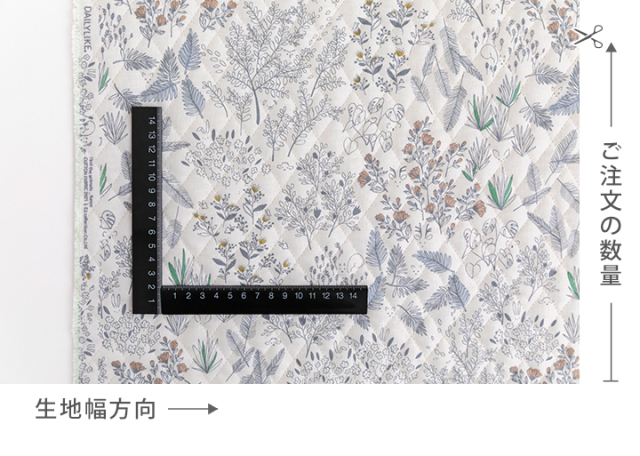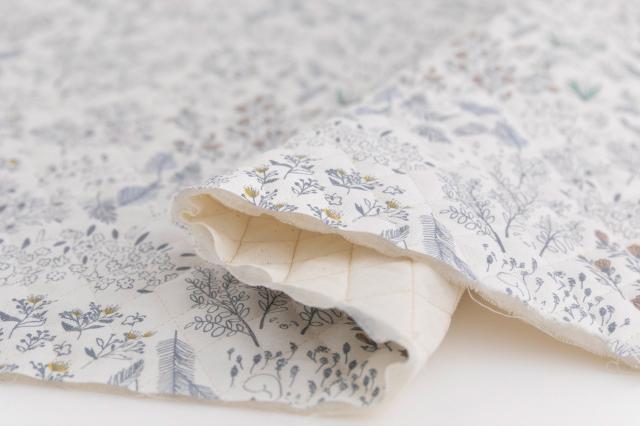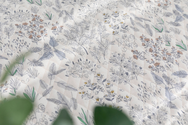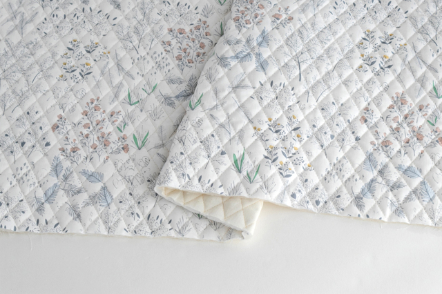ホワイト地でナチュラルな雰囲気の、彩りもふんわり優しいオックスキルティング生地です。