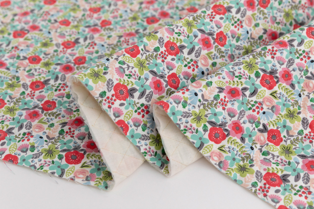 こちらは、丈夫なオックス生地に、ポリエステルの中綿を挟んだキルティング生地です。